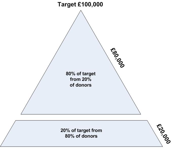Following is the pictorial illustration of the Pareto principle applied to community fundraising